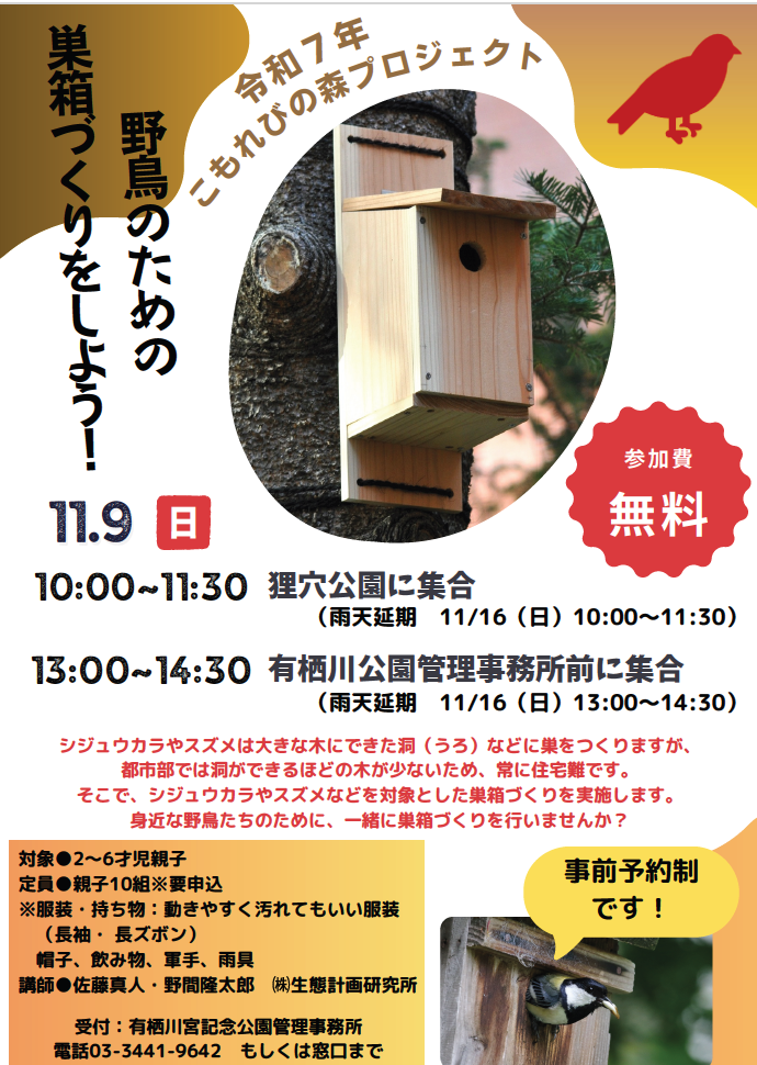身近な野鳥たちのために、一緒に巣箱づくりを行いませんか?