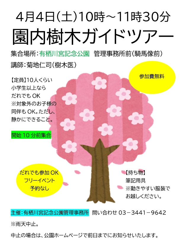 【フリーイベント】4/4(土)園内樹木ガイドツアー